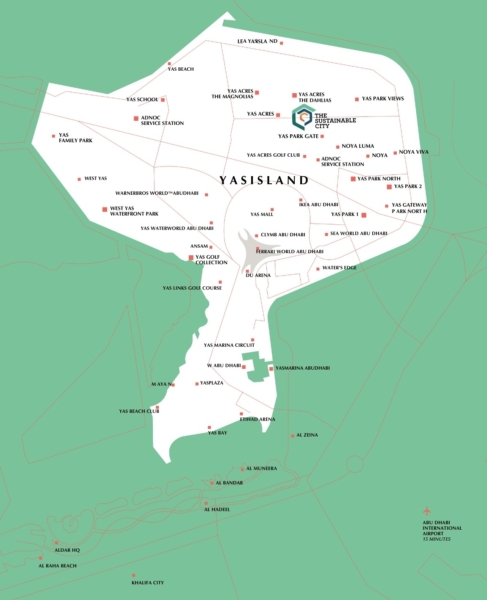 Sustainable City – Yas Island is Abu Dhabi’s first zero-carbon residential community, developed by Aldar and Diamond Developers. This innovative development offers solar-powered smart homes, car-free zones, organic farms, and energy-efficient infrastructure. Located minutes from Yas Mall and major attractions, it blends sustainability with modern luxury—ideal for families and investors seeking green living in the UAE’s most vibrant island destination.